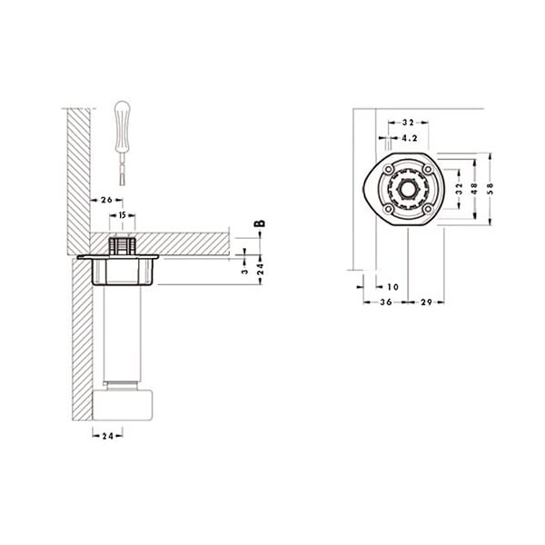 15mm Dowel Mount Socket for Leg Leveler from Peter Meier Inc. (Individual)