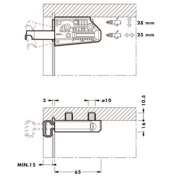806 Haning Rail Bracket Dowel Mount Left (Bag of 100pcs)